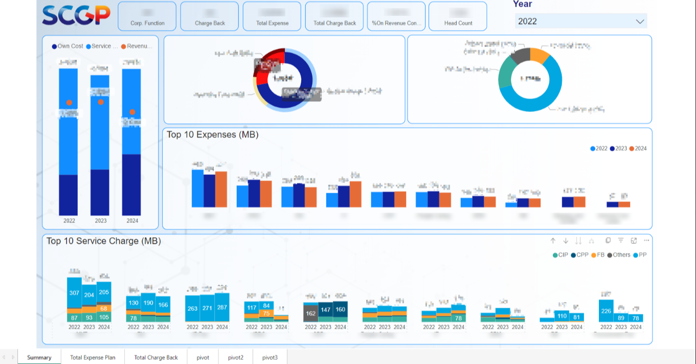 A system designed to calculate service charge revenue based on actual incurred costs. The system enables organizations to create service charge plans using historical data from previous years and define flexible charging formulas, including proportional allocation by usage percentage, headcount-based allocation, or fixed-rate charging.